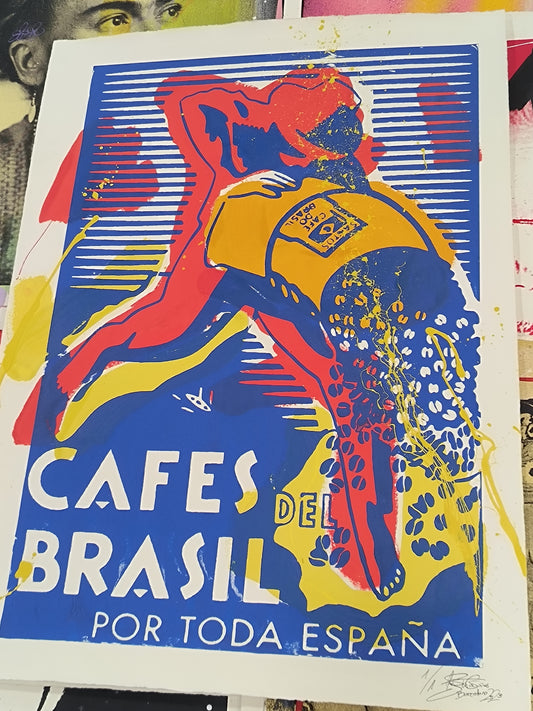 Cafes do Brasil - Retrato print (original painting on paper) Arte Urbano Barcelona