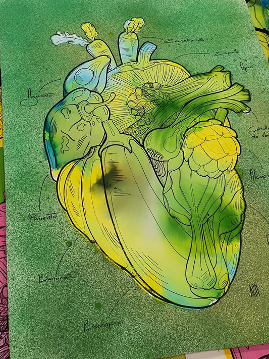 Corazón Vegetal - Retrato print (original painting on paper) Arte Urbano Barcelona