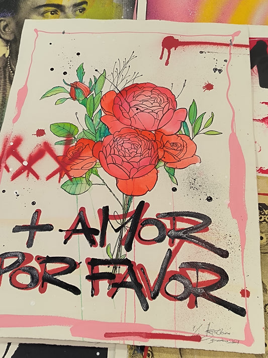 Rosas, Mas Amor Por Favor - Arte Urbano Barcelona. Retrato print (original painting on paper)