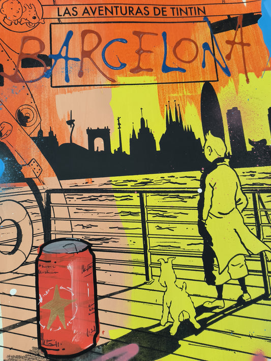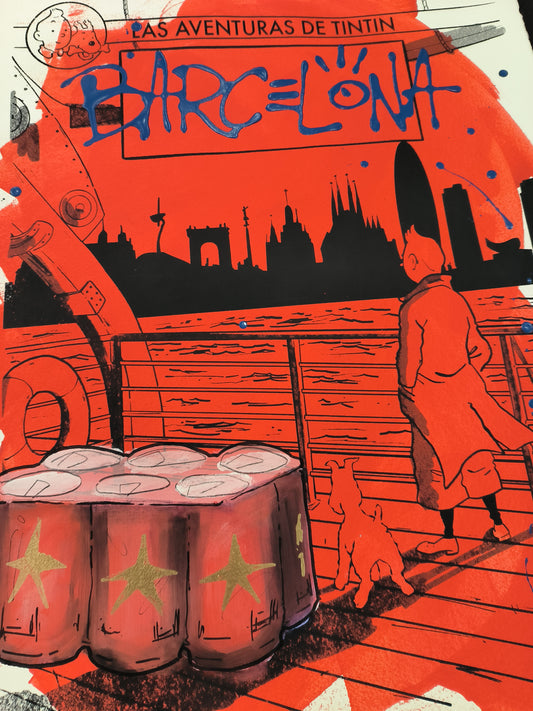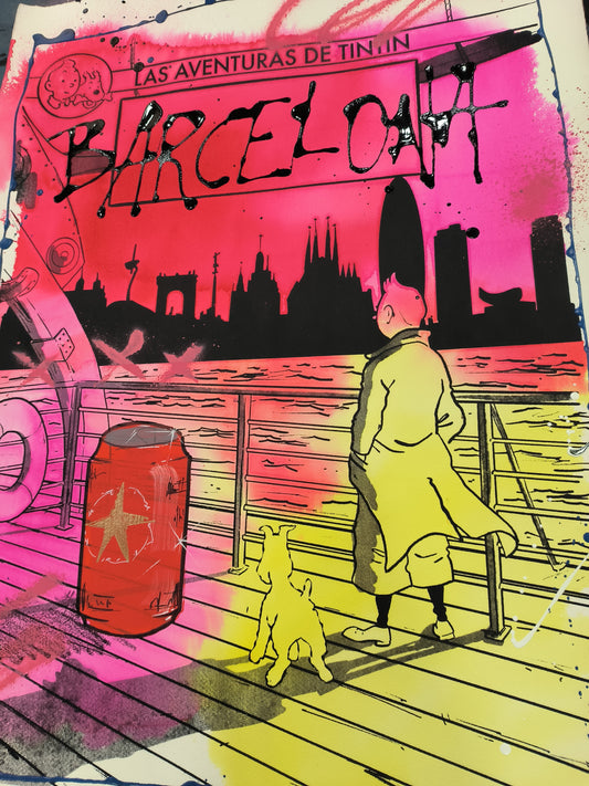 Tintin - Retrato print (Original painting on paper) contemporary art Barcelona