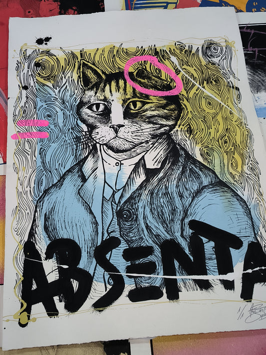 Gato Absenta - Retrato print (original painting on paper) Arte Urbano Barcelona