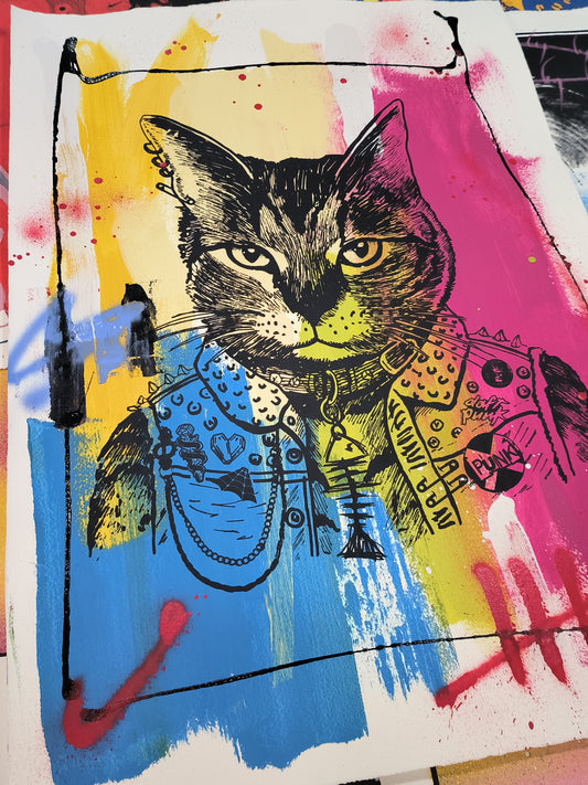 Gato Punk - Retrato print (original painting on paper) Arte Urbano Barcelona
