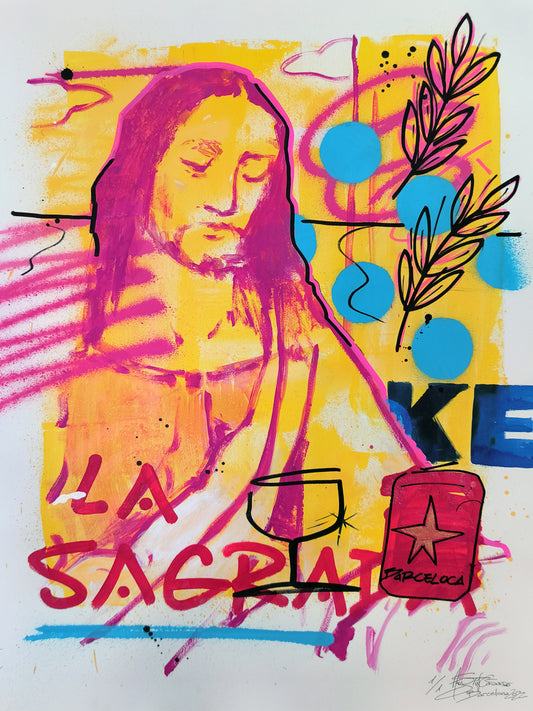 La sagrada: Un Diálogo entre lo Divino y lo Mundano - Retrato Print (original painting on paper) - Arte Urbano Contemporáneo