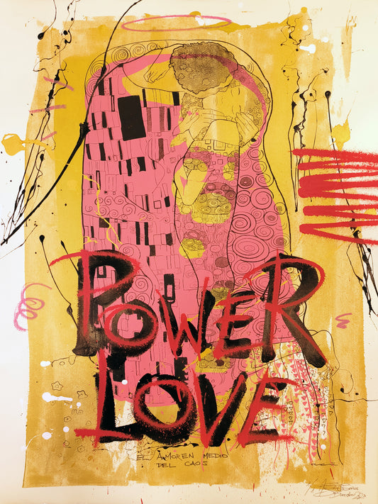 El Beso de Klimt: Fusión de Amor y Arte Urbano Contemporáneo - Retrato Print (original painting on paper)