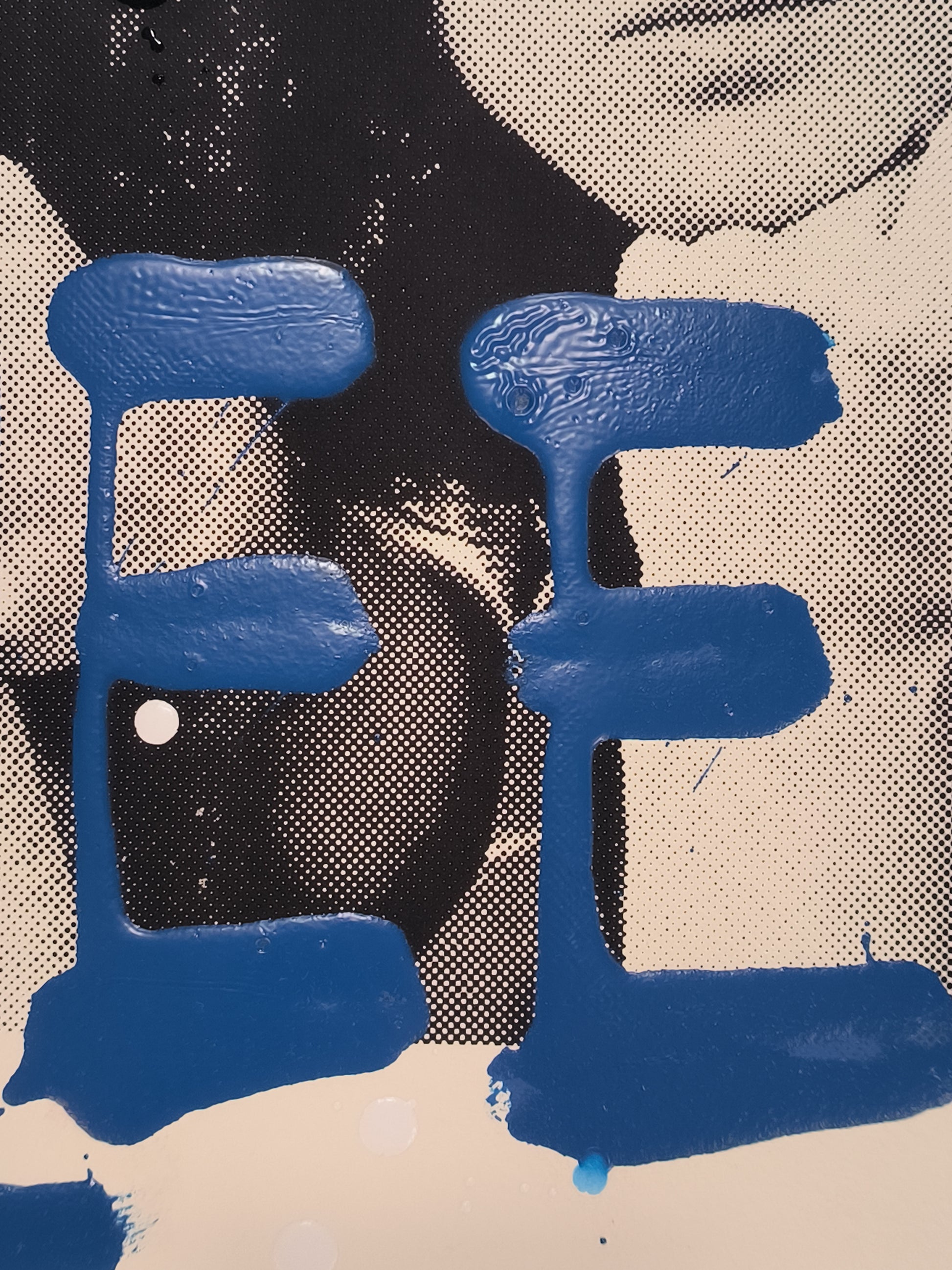 EN: This iconic photo of rock's most influential band, reinterpreted using mixed media, immortalizes the electrifying essence of Queen. Powerful graffiti-style lettering over a monochromatic portrait of the group conveys strength, attitude, and boundless expression.